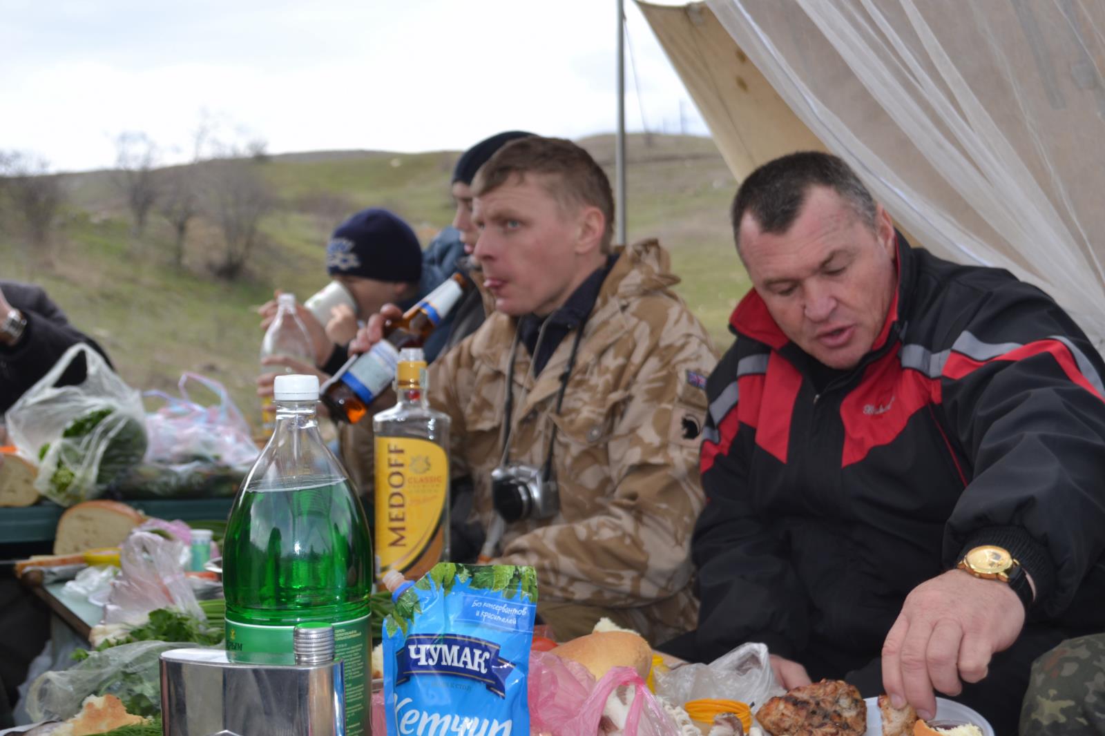 Разбили бивак, и сразу за шашлыки.