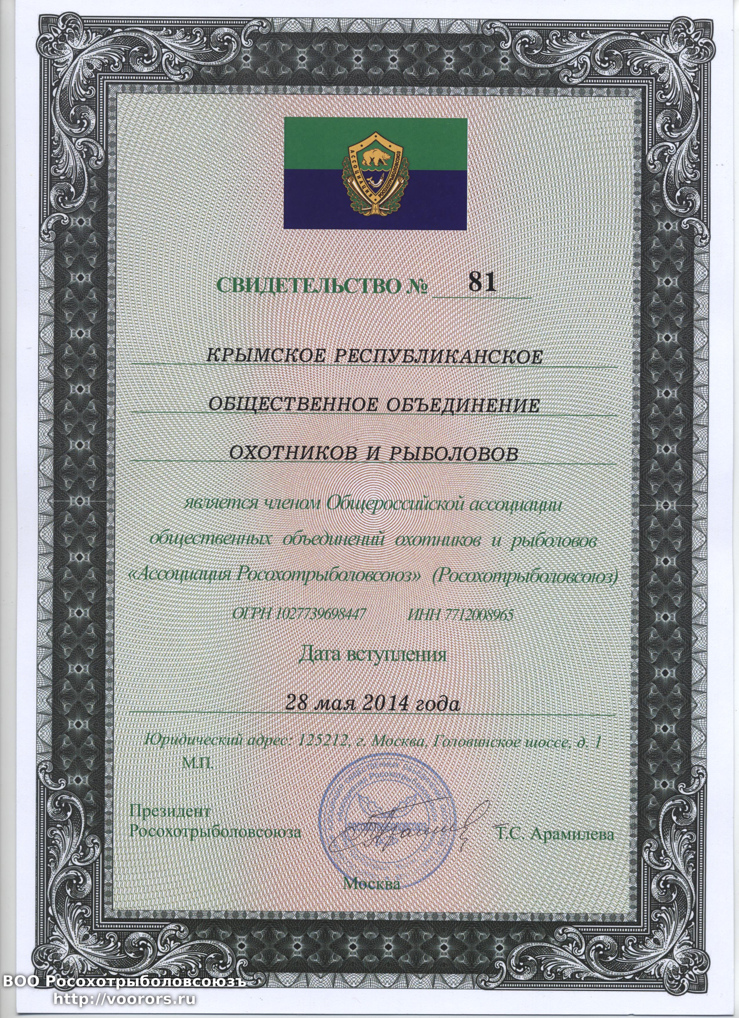 вот свидетельство Росохотрыболовсоюза выданное..28,05 14.