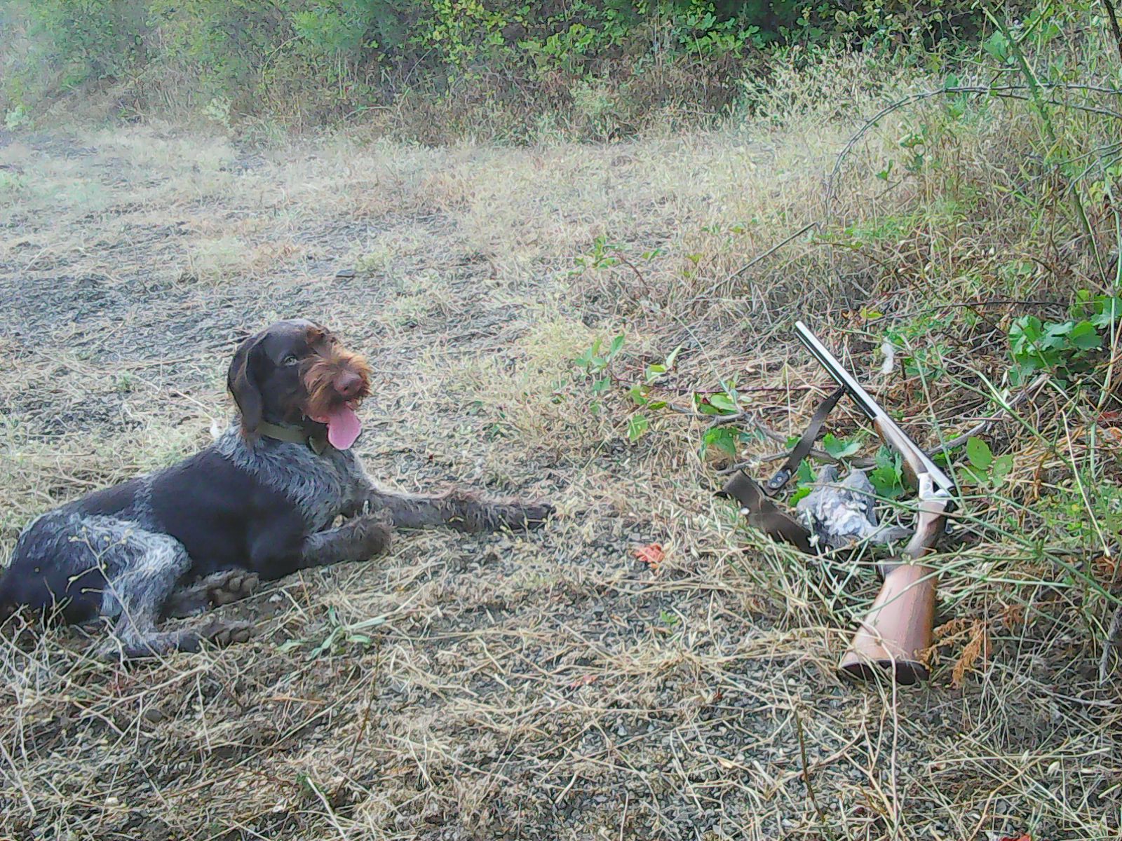Сегодняшний вечерок подарил нам парочку витютней. Второй подранок получился, протянул метров сто и упал в заросли шиповника с ежевикой, правда не далеко от дороги. Я видал лишь примерно место падения. Без собаки шансы найти подранка равнялись нолю. Решили поискать и не зря, Атос справился с этой задачей блестяще! Достать только с шиповника не смог.