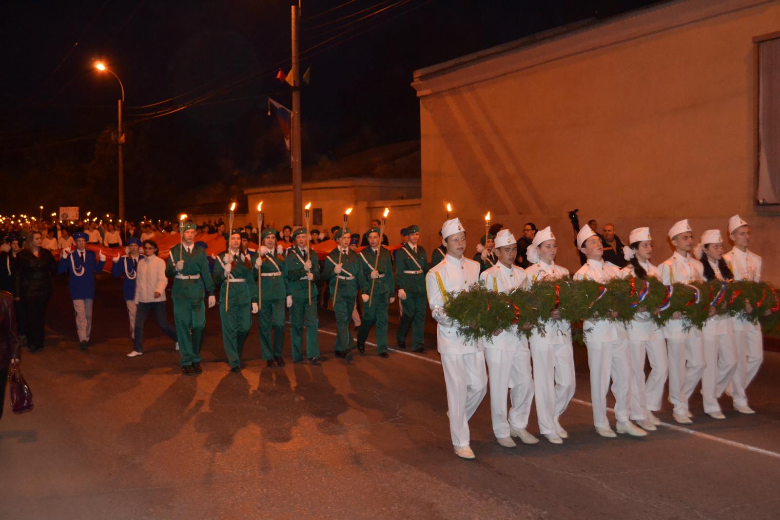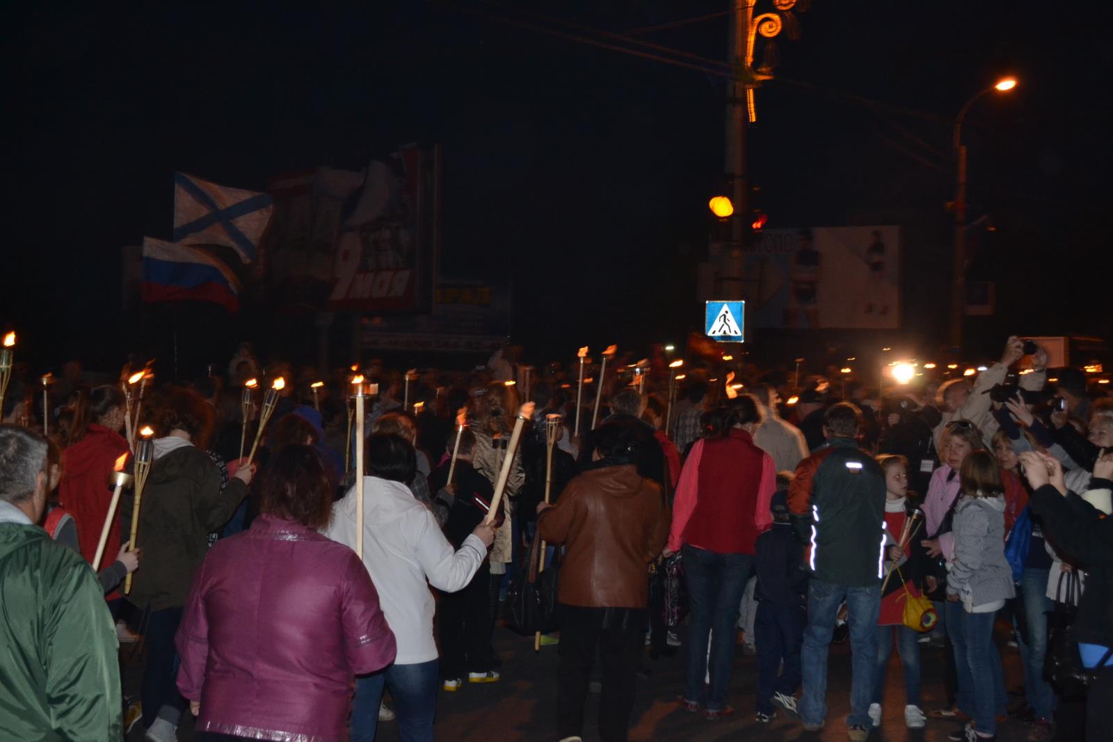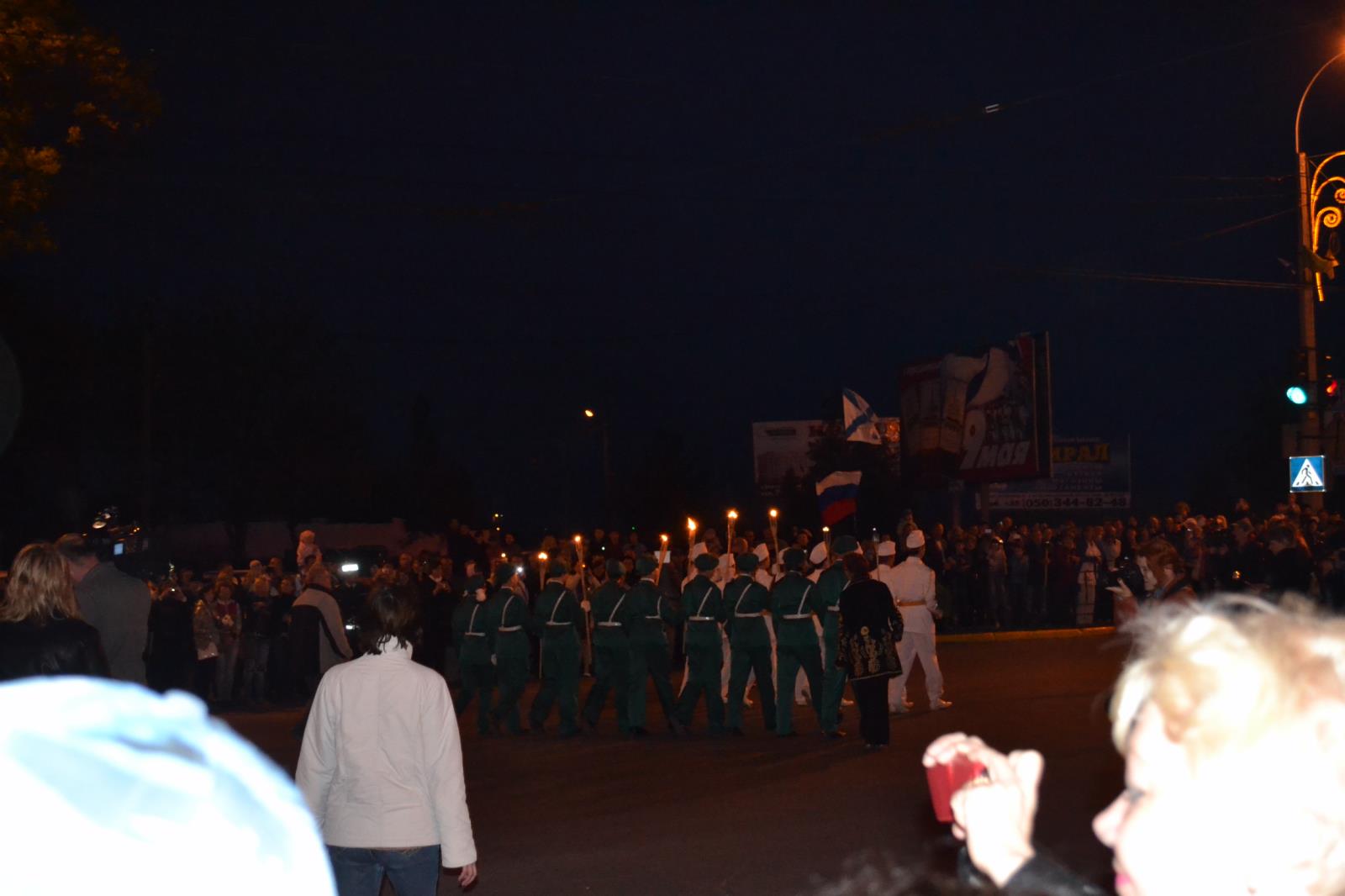 В Керчи уже начали праздновать День Победы. Как всегда 8 мая проходит возложение цветов к памятникам и заканчивается факельным шествием. Которое начинается в центре города и шествует на гору Митридат к обелиску Славы. Зрелище конечно грандиозное и затрагивает до слез и комка в горле.