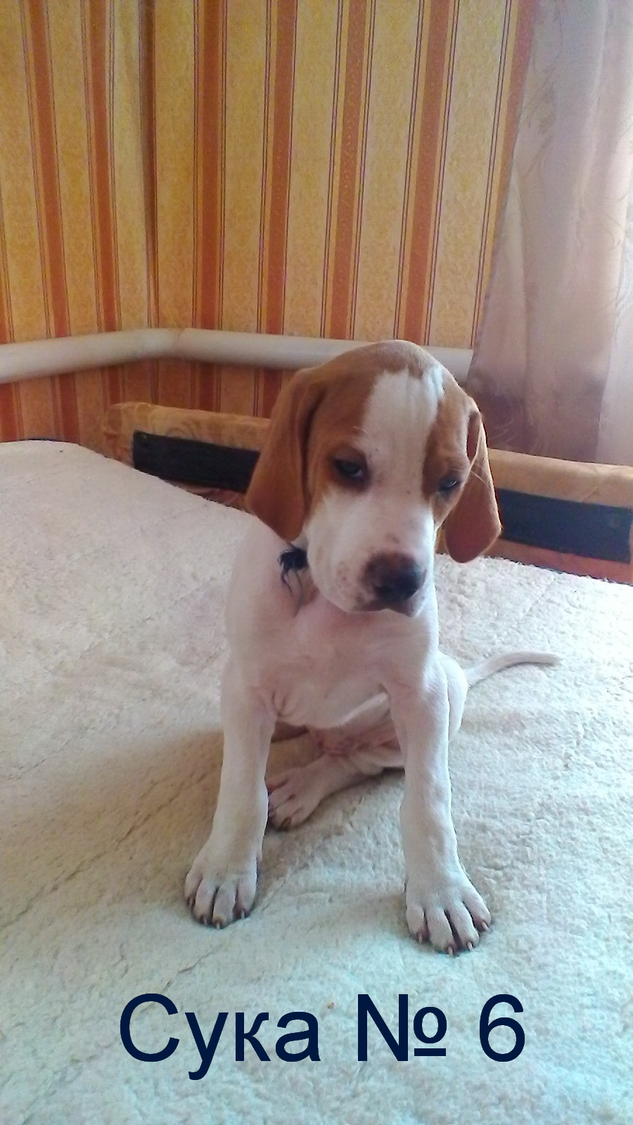1.3. Масть : 1 кобель - красно-пегий, 1 кобель - черно-пегий / 4 суки - черно-пегие, 2 суки красно-пегие
