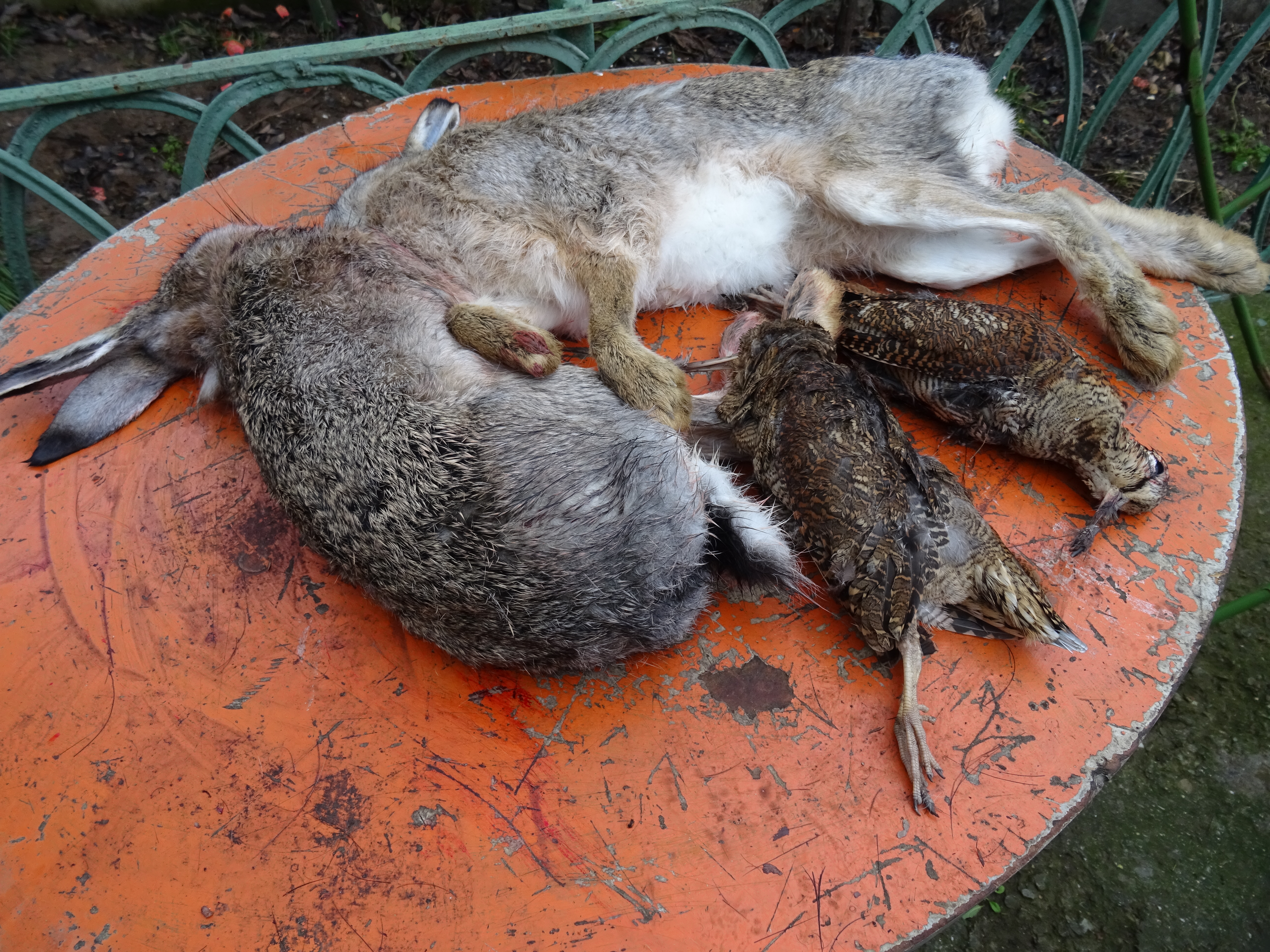 ружье на предохранителе и тут зайка поворачивает на 180 и бежит вверх, стреляю с левого( девятка Фетер), зайка катится вниз, от выстрела подымается шнеп и тоже падает, с правого спортивным. Дуплет!