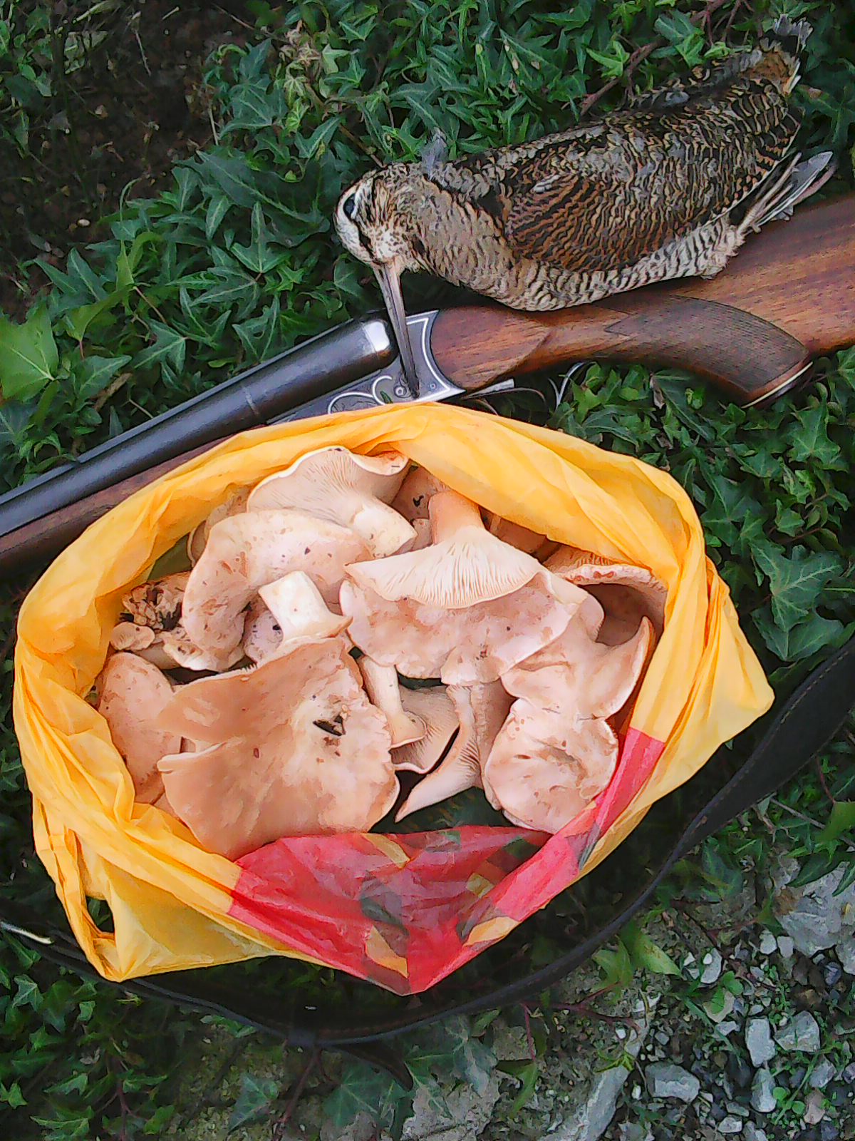 Я немного нашел грибов, а Атос вальдшнепа и зайца. Вальдшнепа взяли, а зайка не пожелал бежать в мою сторону, видимо предчувствуя, что эта встреча ничего хорошего ему не сулит.
