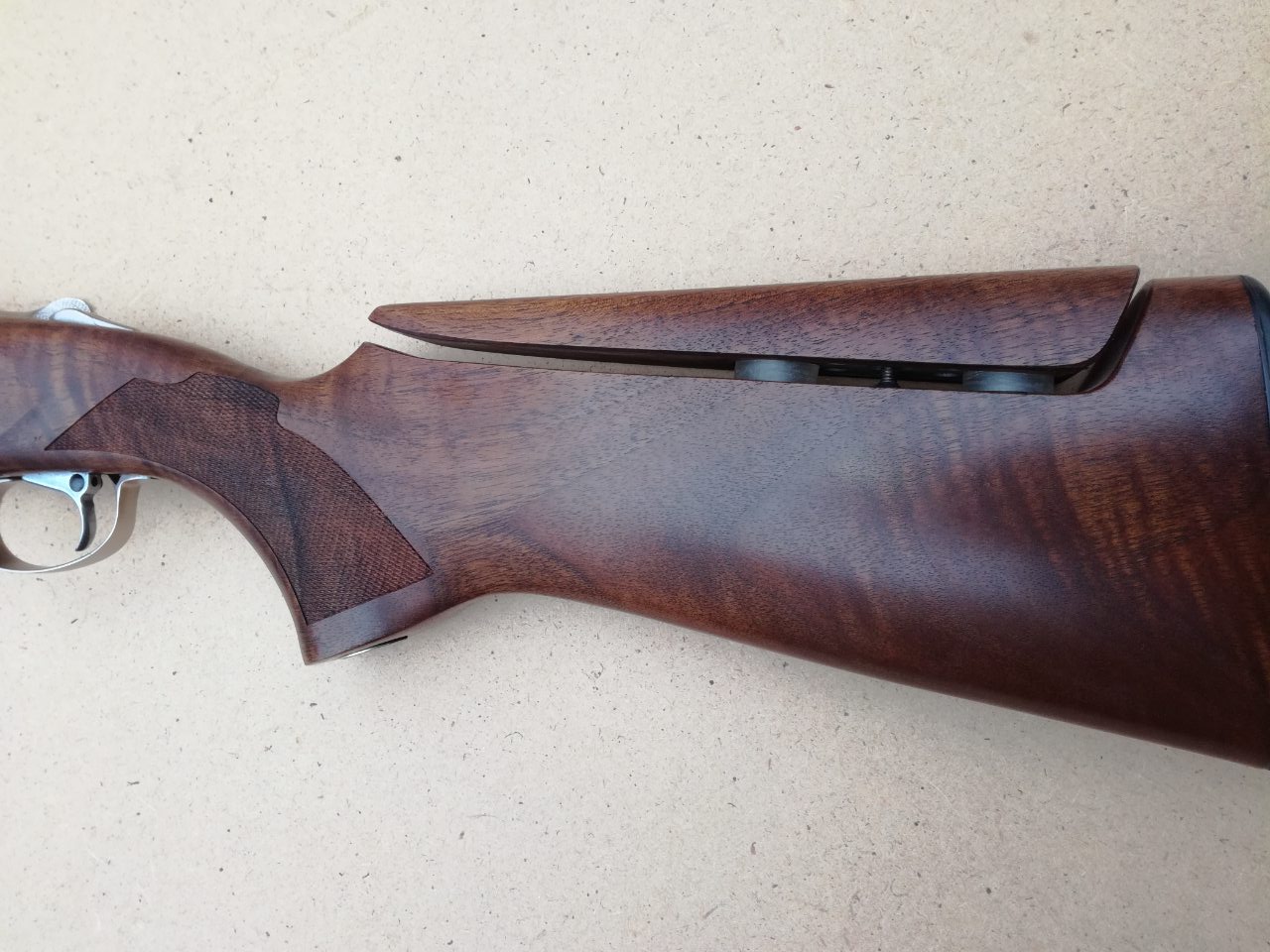 Регулируемый приклад позволяет оптимально настроить ружье под стрелка, отверстия на стволах значительно уменьшают подбрасывание стволов во время выстрела. Хороший вариант для любителя пострелять по тарелкам ( ружье для этого делалось). На охоте работает на отлично - нет отклонений осыпи от точки прицеливания, резкость очень высокая (много пролетных уток удивились до потери сознания), пользоваться селектором удобно. Сменные дульные сужения позволяют подстроить ружье под конкретную охоту. Автоматически на предохранитель не ставится (мне кажется это плюс).