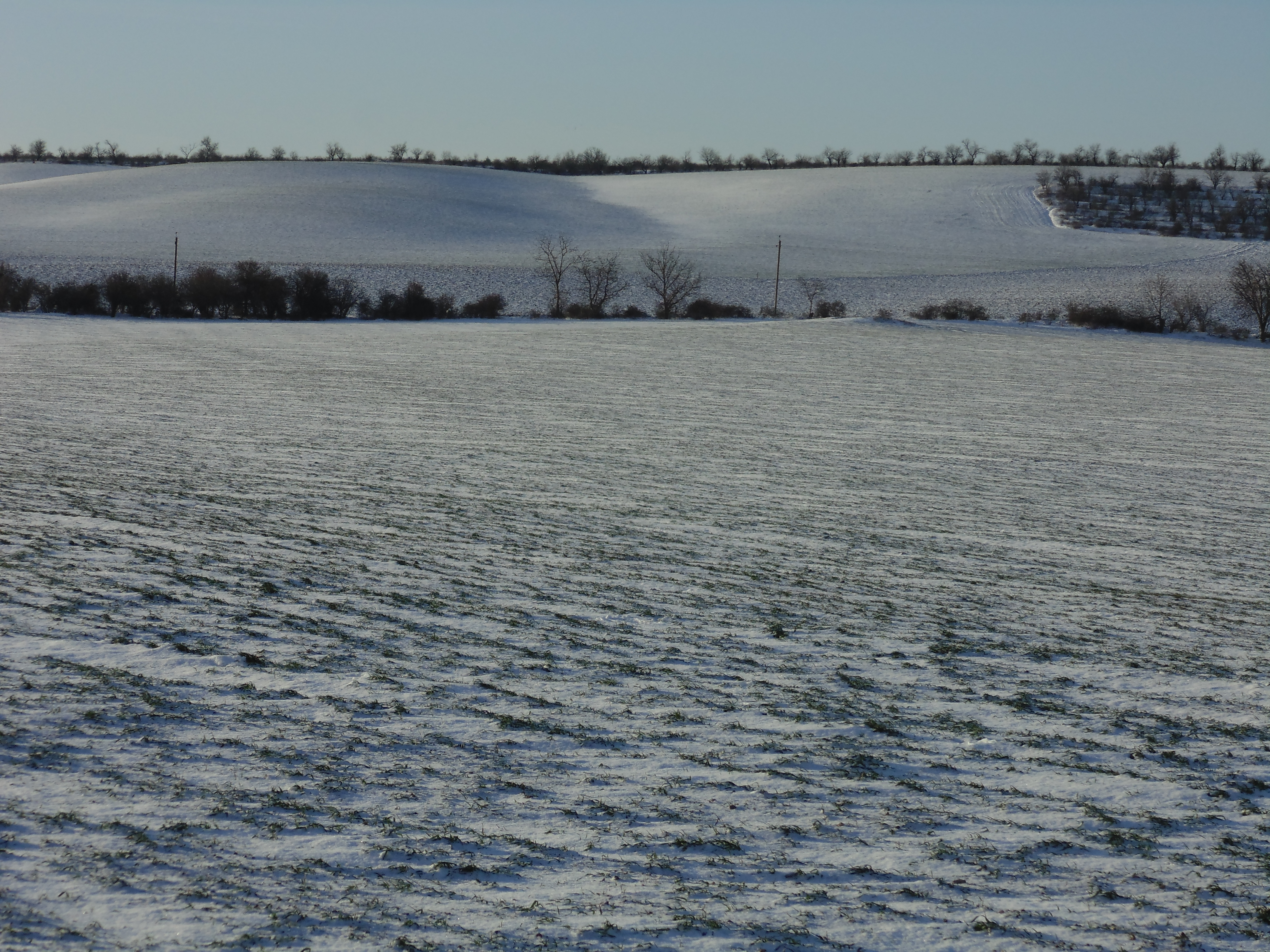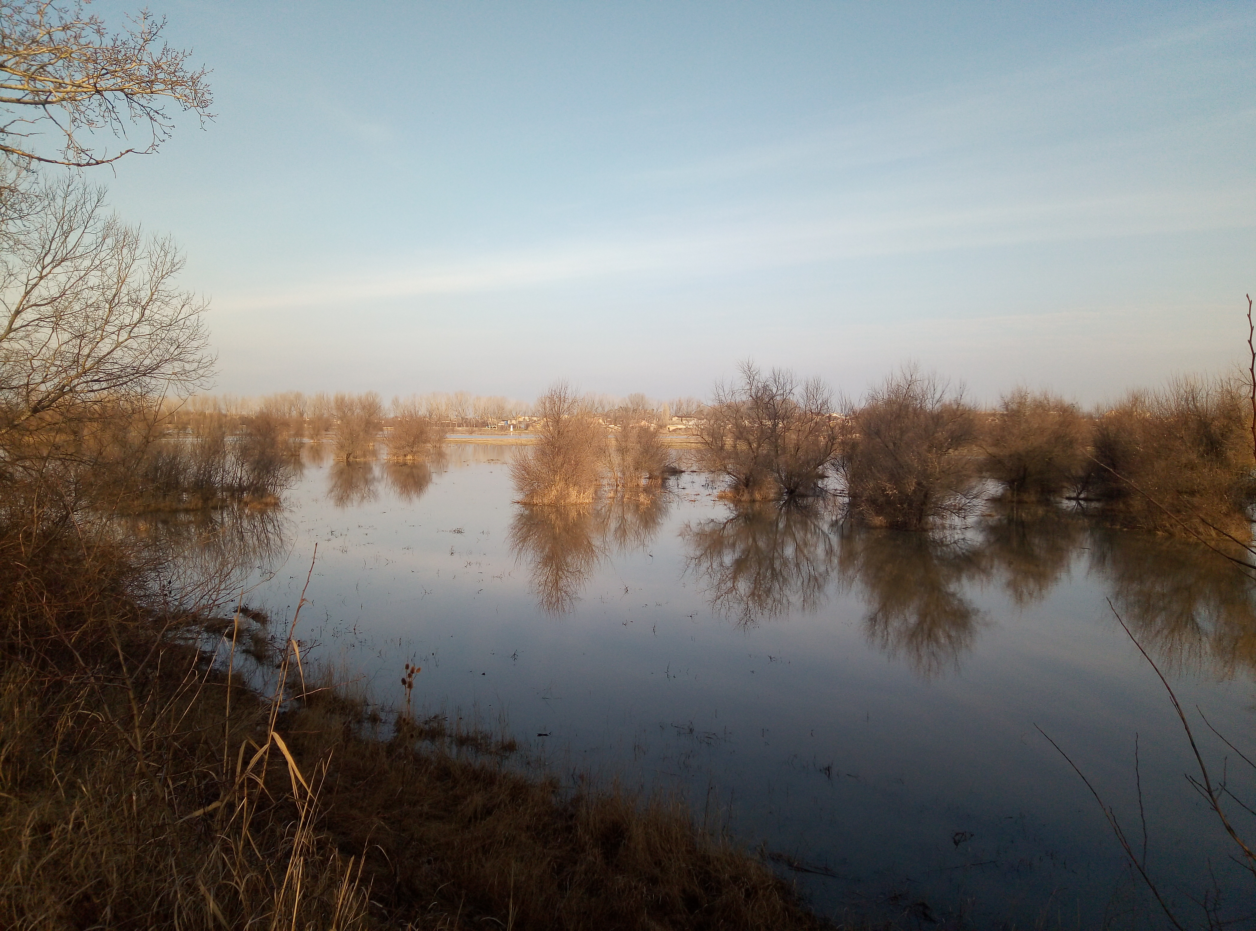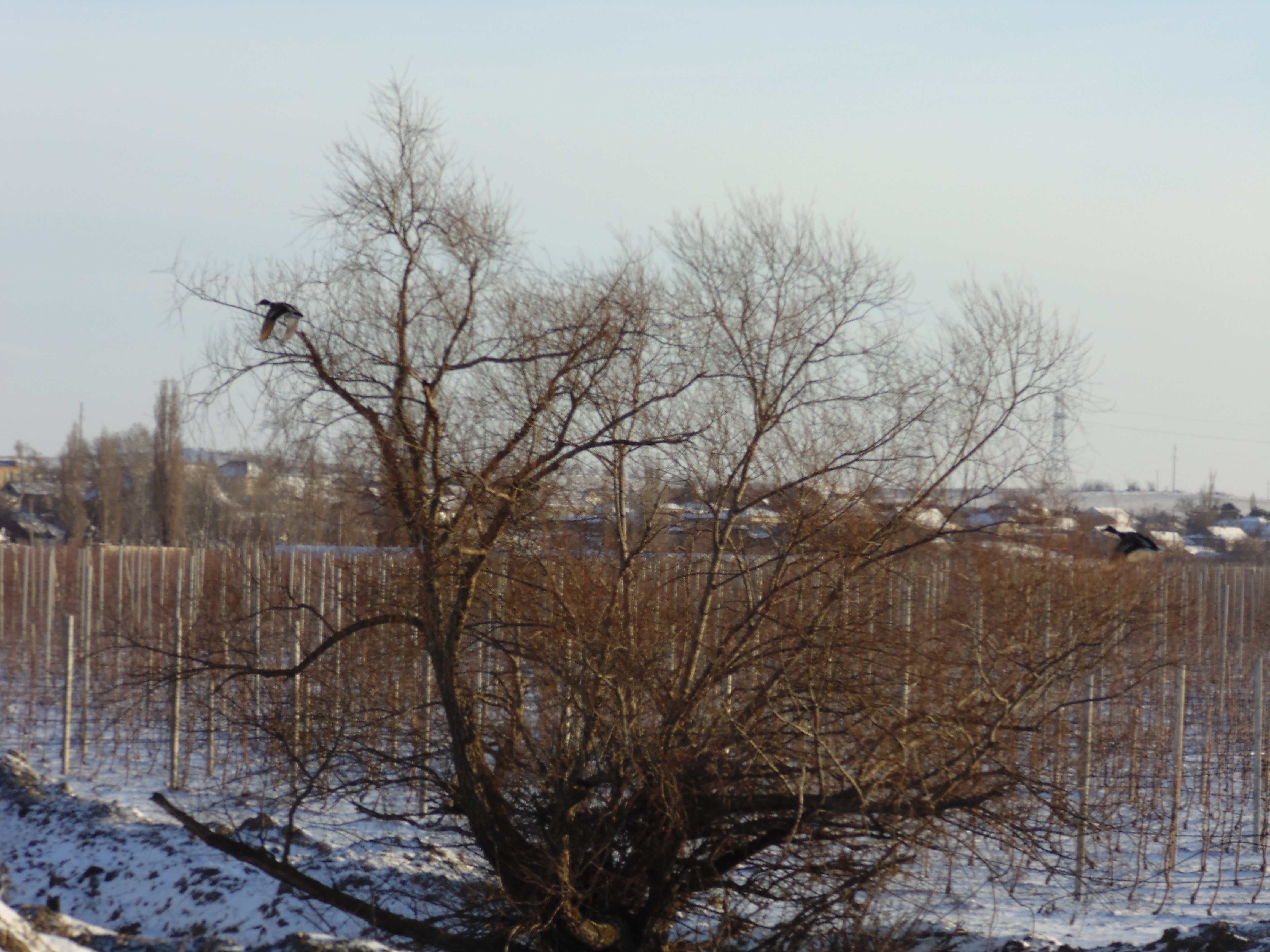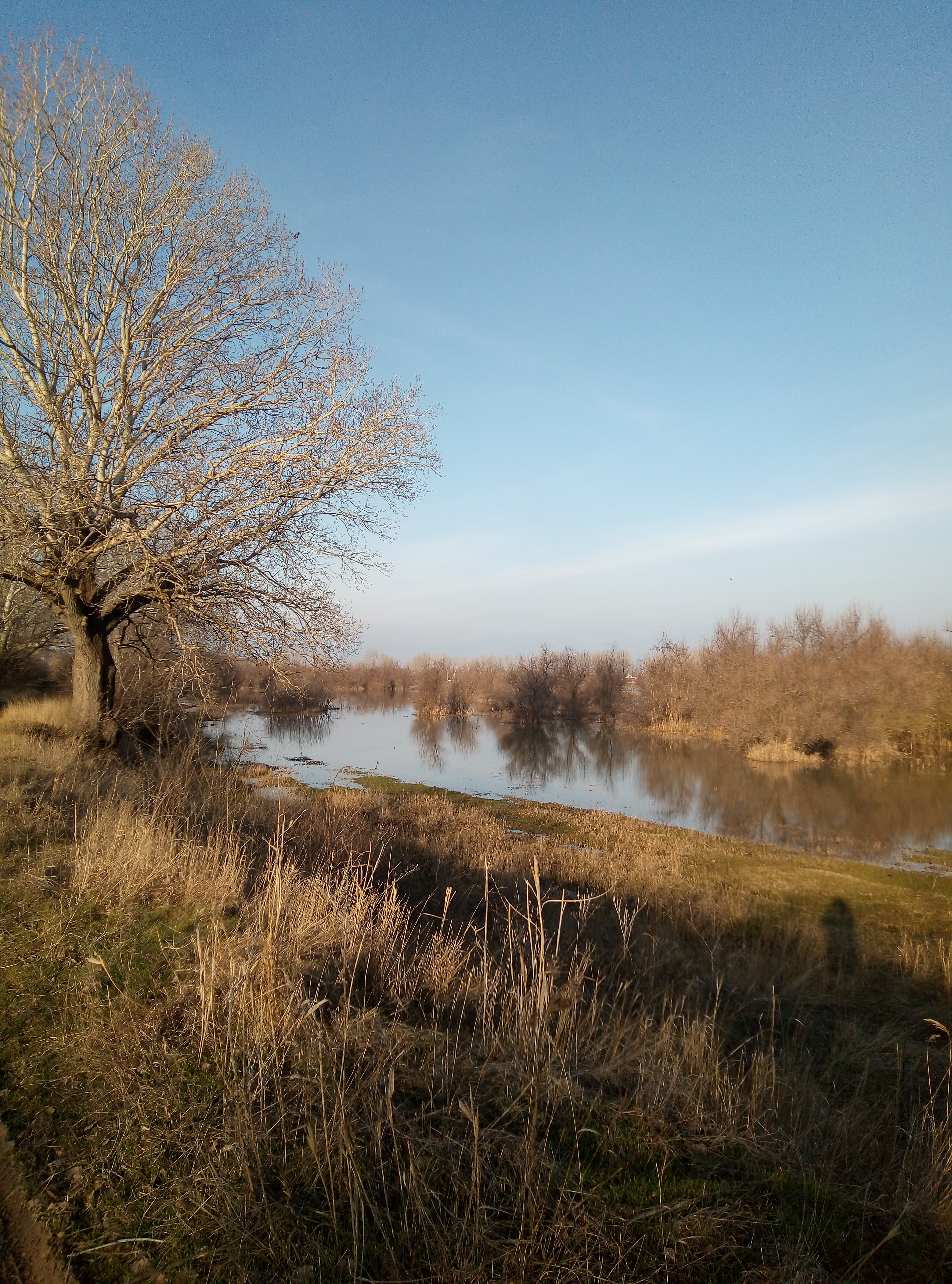 С утра не выдержал,погода супер, рванул на речушку, на прогулку.Следы на снегу показали,что зайчик есть и не плохо наследил.По поводу фазана следа мало,но возможно погода дала свои корректировки... был и одиночный след,возможен волчий.В том районе пастухи жаловались,что пару месяцев назад порвали телку.По речке утки не было , но рядом на ставках поднял с десяток чирков-свистунков,четыре кряквы ,несколько морской утки и видел с десяток лысух и столько же водяный курочек