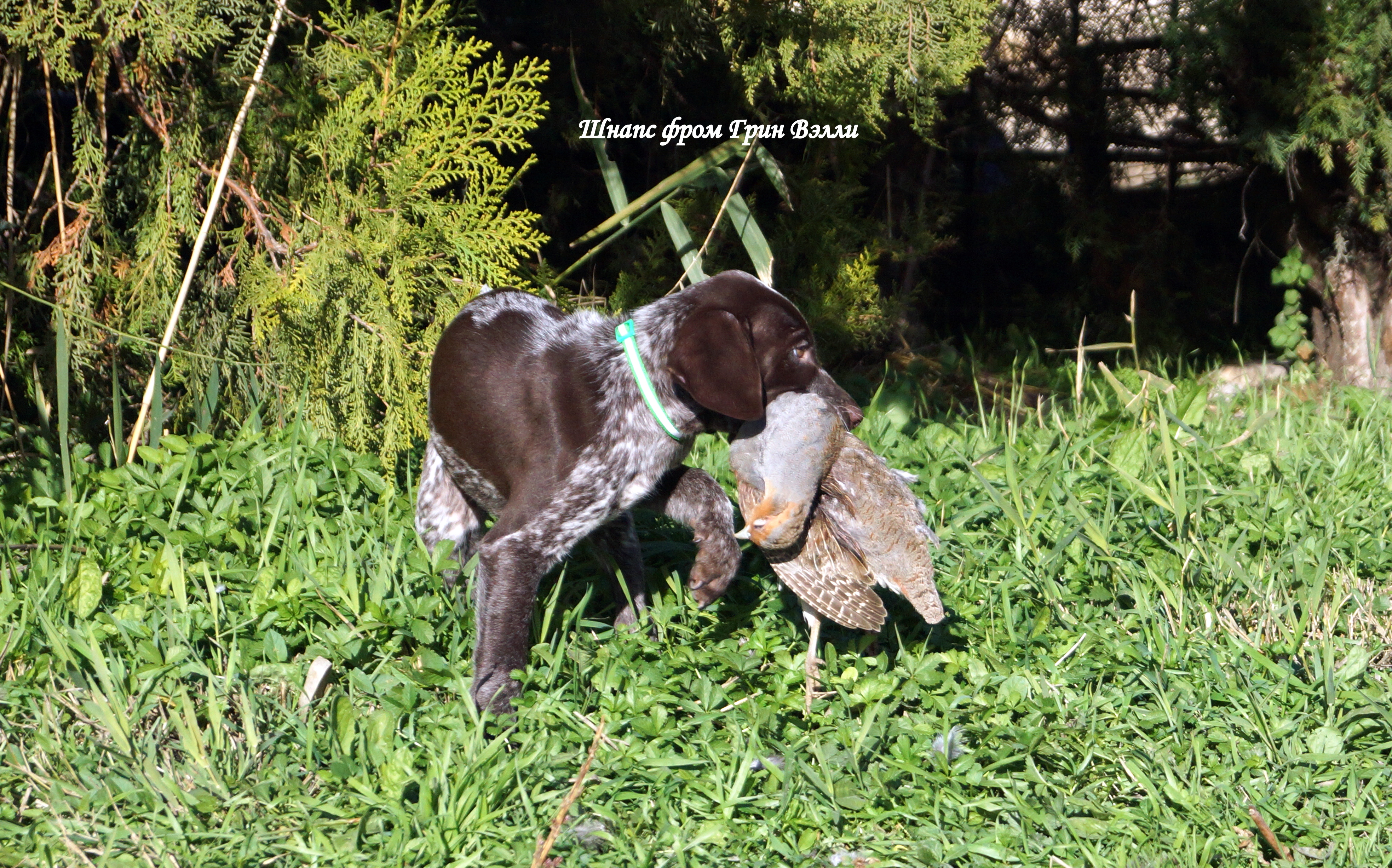 Имеют 2 прививки, начали знакомится с улицей, и свежедобытой куропаткой))
