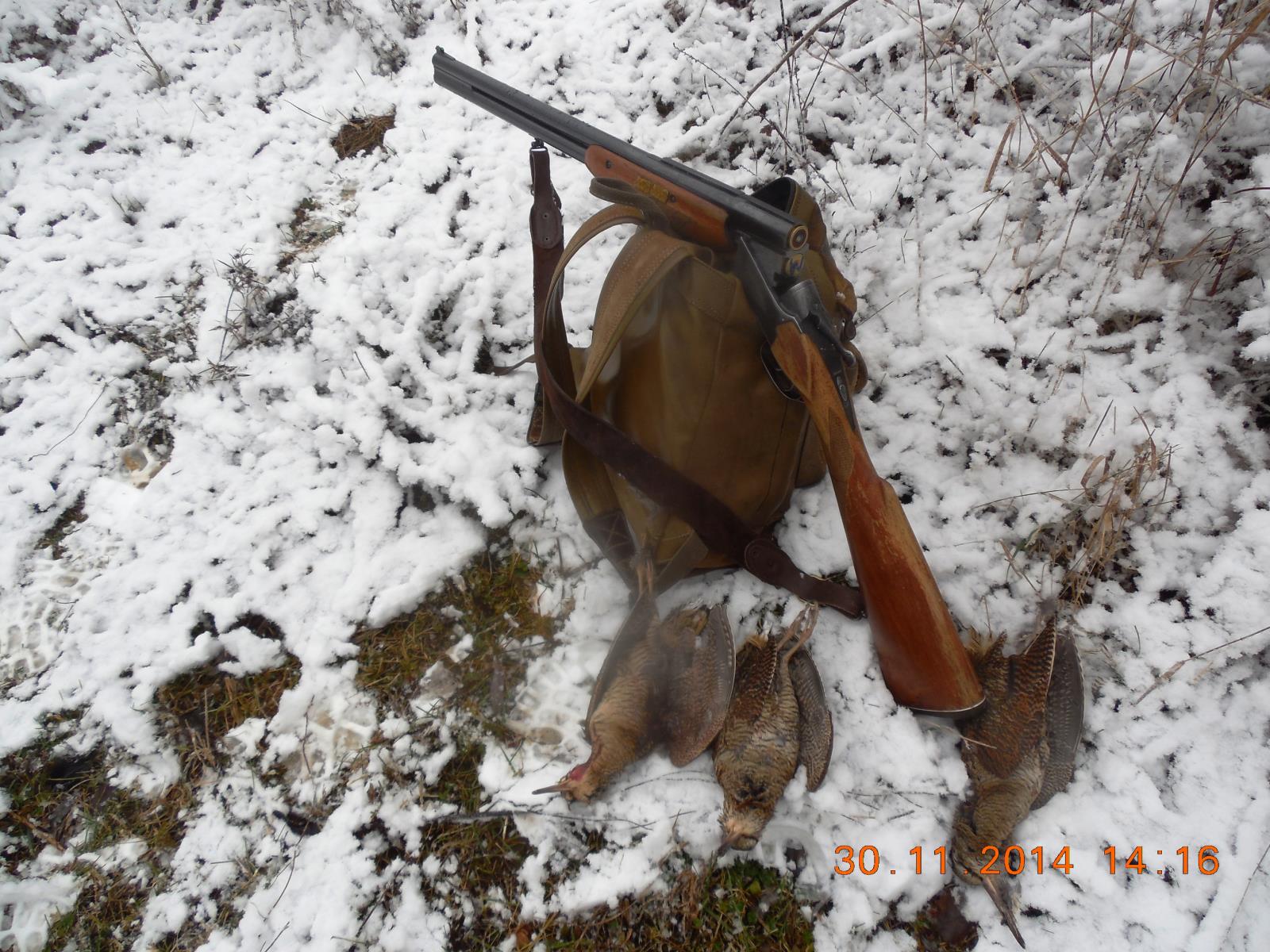 А мы сегодня за короткие послеобеденные часы смогли добыть только одного. Еще по одному удалось выстрелить. Остальные редкие подъемы в глубине густого леса с уходом в лес. Прячется от холодного ветра и активно бегает от собаки. Ждем очередной волны.