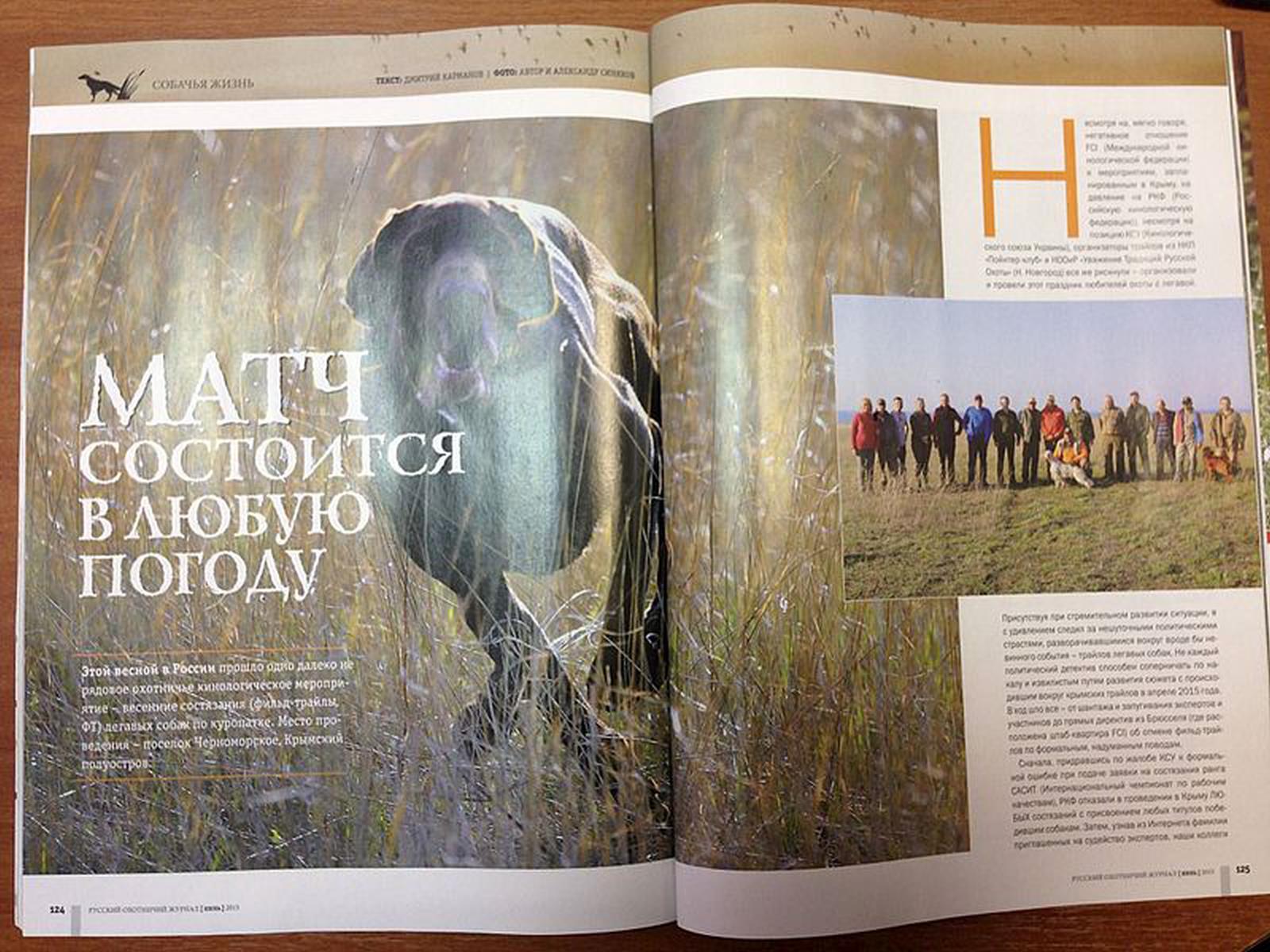 В продолжение своего рассказа о кинологических состязаниях в Крыму весной 2015 года (РОх ? 4, 2015. Кубок Крыма), хочу рассказать о явно нерядовом событии в охотничьем собаководстве России, о прошедших в угодьях около ПГТ Черноморский (Крым) весенних состязаниях легавых собак по куропатке. Зная, о мягко говоря негативном, отношение ФЦИ (Международная кинологическая федерация) к мероприятиям в Крыму, о ее давление на РКФ (Российская кинологическая федерация) и позиции КСУ (Кинологический союз Украины) организаторы из НКП Пойнтер-клуб и НООИР 'Уважение Традиций Русской Охоты' (Н.Новгород) все же рискнули, организовали и провели этот праздник любителей охоты с легавой. Присутствуя при стремительном развитии фабулы, я с удивлением следил за нешуточными политическими страстями, разворачивающимися вокруг вроде бы невинного события - трайлы легавых собак. Не каждый политический детектив способен соперничать по страстям и извилистым путям развития сюжета с происходящим вокруг Крымских трайлов в апреле 2015 года. В ход шло все, от шантажа и запугивания экспертов и участников, до прямых директив из Брюсселя (Штаб-квартира ФЦИ) об отмене ФТ (фильд-трайлов) по формальным, надуманным мотивам. Сначала, по жалобе КСУ, придравшись к формальной ошибке при подаче заявки на состязания ранга САСИТ (Интернациональный чемпионат по рабочим качествам) РКФ было отказано в проведении ЛЮБЫХ состязаний в Крыму. С присвоением любых титулов победившим собакам. Затем, узнав из интернета о фамилиях приглашенных на судейство экспертов, наши коллеги с Украины серьезно надавили на них, в результате чего, эксперты из Италии, не смотря на данное организаторам согласие и уже купленные билеты, судить наши состязания в Крыму отказались. В этот момент, честно говоря, у меня появилась мысль о том, что праздника не будет. Уж очень сильно прессовали наши соседи и их европейские помощники. Надо отдать должное, организаторы сохранили спокойствие и уверенность в своих силах, и продолжали работать. Проблема была решена. Изящно и просто. Не будет титулов? Пусть. Титул еще получить надо. Куда важнее оценка твоей собаки иностранным экспертом. Отказались итальянцы? Пусть. Есть у России друзья и в Европе. В данном случае помогли сербы. Древнее братство двух близких народов работает и в кинологии. Несмотря на угрозы КСУ бессрочно дисквалифицировать участников любых кинологических мероприятий в Крыму, были собаки и с Украины. Всего набралось более 50 собак, причем меня порадовало большое количество континентальных легавых. Много было молодых собак, из наших питомников, родившихся уже в России, и надо сказать, что они ничуть не уступали собакам, привезенным из-за рубежа. Состязания продолжались 8 дней (с 16 по 22 апреля включительно), зачастую, одним днем совмещали состязания континеталов (Охотничий поиск) и островных легавых (Дерби, Охотничий поиск, Большой поиск). Судейская бригада в составе Dragan Niketic (Сербия) Radivoc Miljkovic (Сербия) Шагинов С (РФ), Смирнов С. (РФ), Смирнова Е. (РФ) работала как часы, также надежно, четко и без ошибок. Все было вовремя, организаторы тоже постарались на славу. Всего было 145 пусков собак, из них было 24 квалификации. У островных : Отлично (ECC)-4 , Оч. хорошо (MB) - 7, Хорошо (Bon) - 1. У континенталов: Отлично (ECC)-0 , Оч. хорошо (MB) - 5, Хорошо (Bon) - 1, Сертификат о врожденных рабочих качеств ( CQN ) 
