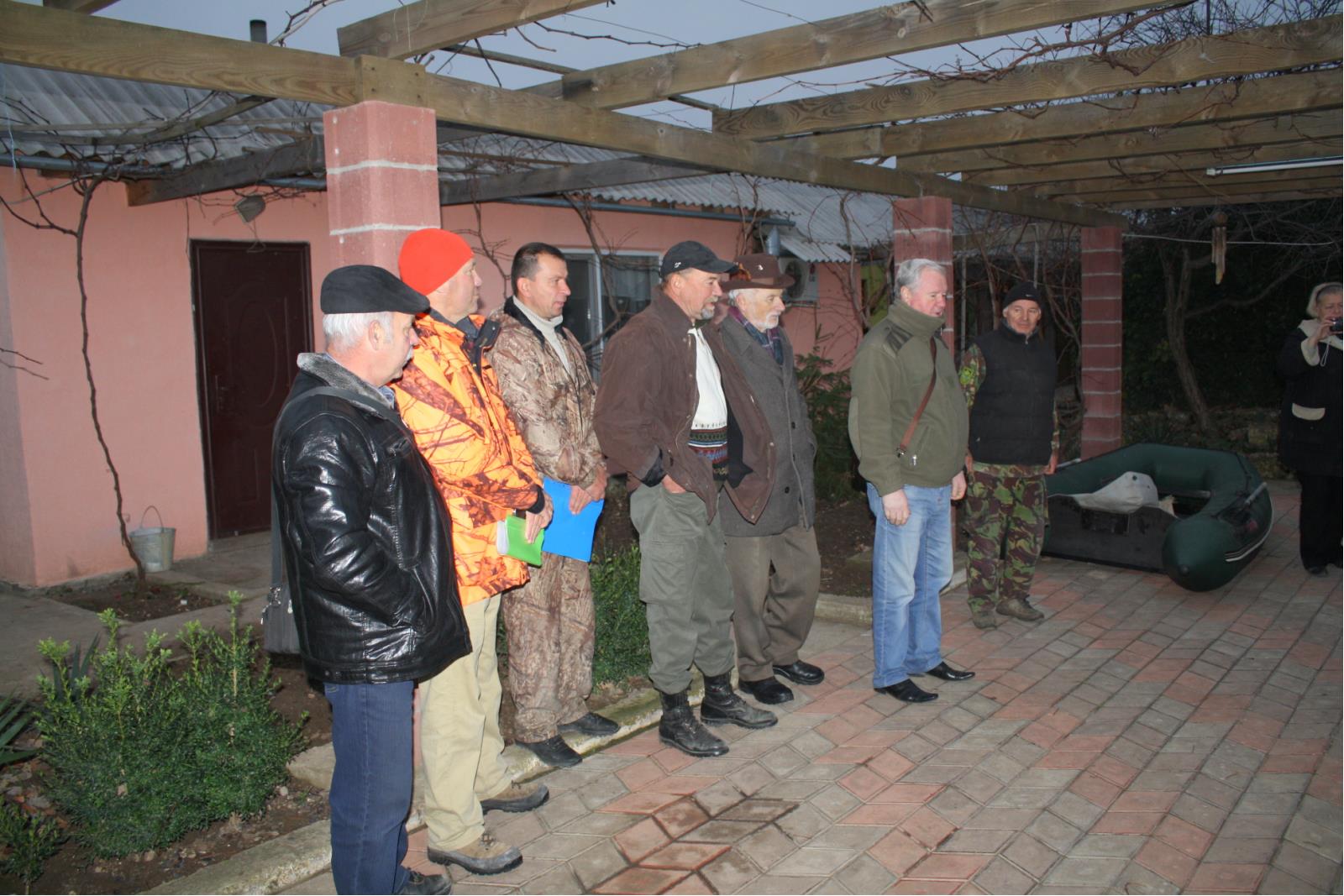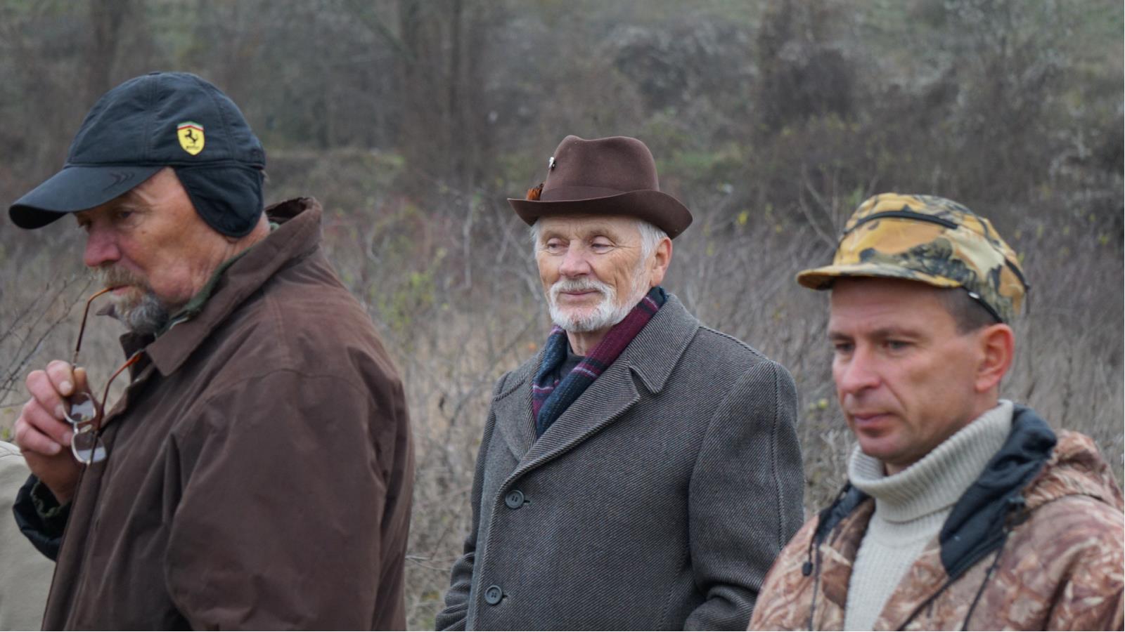 На построении выступили руководители СРООР – Евлашкин В.М. и РОКО КОСС – Асмаловский В.В., эксперты Стоячко А.В.(Национальная категория), Поддубный В.И.(1 категория), Герасиков Л.Л.(2 категория), которые поприветствовали участников теплыми словами, не преминув ввести их в курс дела в отношении Правил и специфики работы собак. После чего все дружно выехали в угодья.