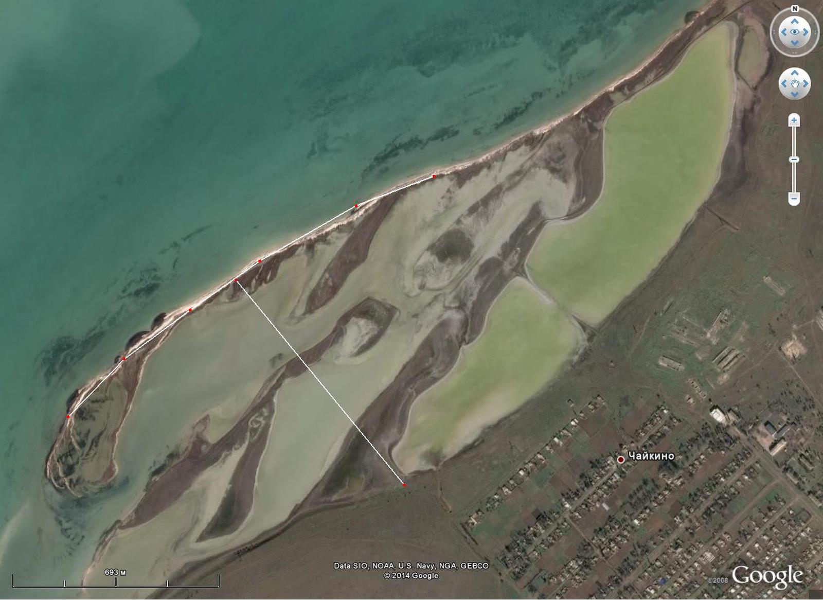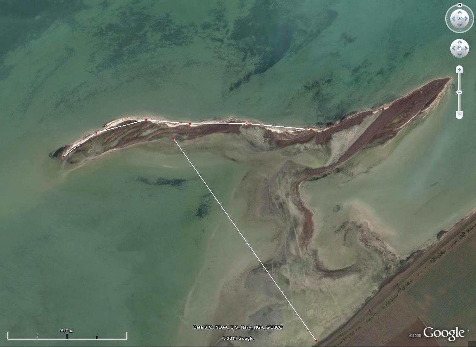 Это что касается косы "Конячий" прикладываю вид со спутника. расстояние между точками на косе 250-300 метров.
