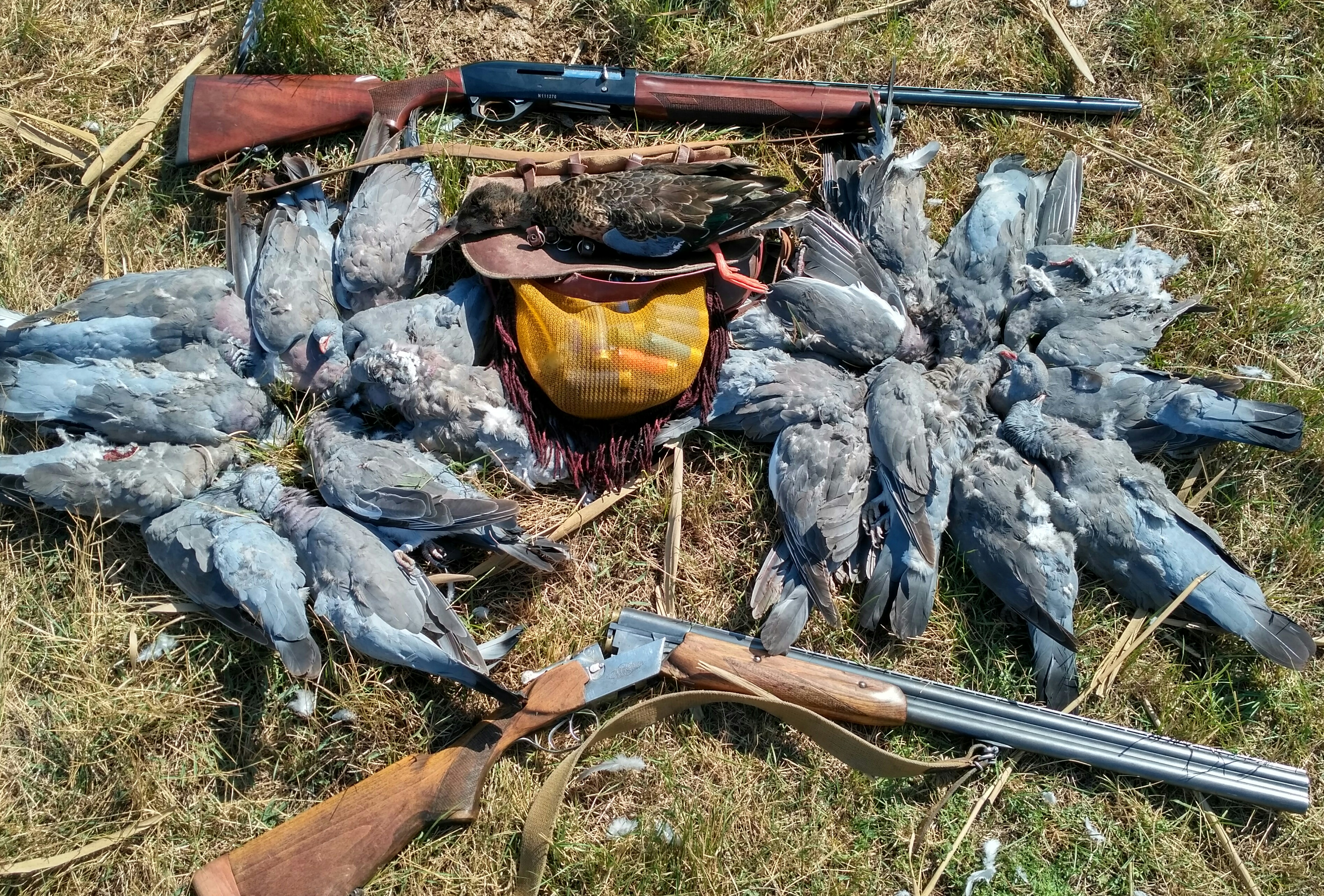 Лысенко писал(а):С утра решили покараулить вяхиря на водопое. Но время приближалось к обеду, а он так и не летел. Были единичные налеты из которых удалось добыть пару штук. И засидки переставляли пытаясь подстроиться под налеты и чучела переставляли, пытаясь исправить ситуацию. Но если не летит то не летит. Видимо нащел новый водопой. Так как в стороне пролетали стайки и явно уже с кормежки. Будем искать где он пьет. Просидев до половины одиннадцатого решили собираться и посмотреть кормовые поля. Нашли быстро так-как знали где есть подсолнух. Который кстати оказался уже скошенный. Порадовало количество голубя. Ну очень много. И вся эта масса должна пить. Значит надо искать где. А пока решили после обеда охотить его на кормежке. Все как всегда скрадок,чучула. Но он совершенно на них не реагировал. Весь голубь сбился в одну большую стаю. Даже одиночки садились на провода смотрели и улетали. А в воздухе над головой крутилась карусель из разных птиц. Аж голова кругом. И отвлекало здорово. Осознав что надо менять тактику решили охотиться с подхода. Не очень результативно но все-таки лучше чем просто сидеть. Итог охоты 12 шт. на двоих. С трофеями фото не делал, надо было еще собираться.