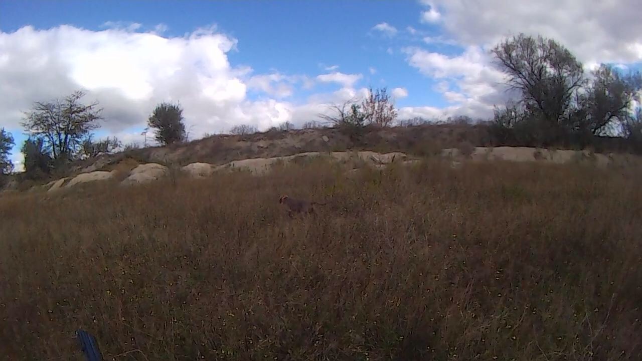 часть вторая.. та же лесополоса,рельеф местности позволяет наблюдать как Даша тянет по следу..Впереди в 10-15 метрах бегом бежит фазан...так продолжается метров 30-40.,Даша набирает скорость... потом внезапно, фазан кидается скачком в сторону и огибает собаку по радиусу..бежит обратно.. Собака пролетает по инерции и теряет след.. нооо,меня он, к своему сожалению ,не увидел...