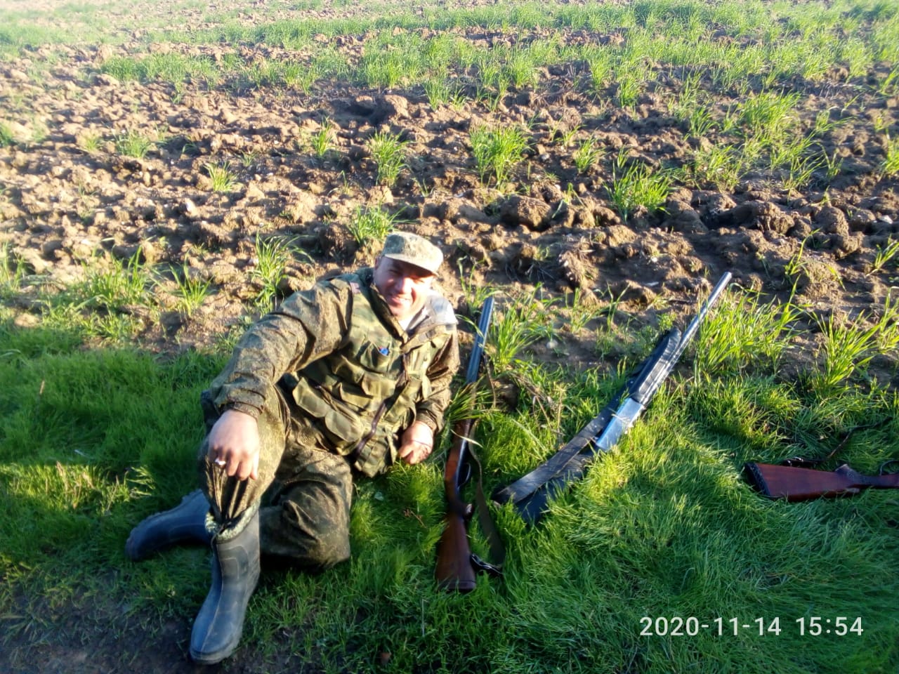 Очередная охота на зайца, но снова на коллектив не добор. На семерых охотников, плюс четыре собачки добыли пять ушастых, но ради справедливости набрать могли на всех. Зайцу фартило, а мы мазали. Заяц лежал в молодом винограднике, одного подняли в пахате. На открытие почти весь заяц лежал в винограднике, но увы листья не спали (в большинстве случаях ещё зелёные) на втором рядке уже не чего не видно. Так, что два захода в винограднике восемь подъемов и одного добыли и один подранок ушел :Unknown: после чего решаем с виноградникам уйти, от греха подальше. На стерне взяли ещё одного. Итог на шестерых два зайчика, но открытие есть открытие сели обедать :Drinks: На второе воскресенье на семерых взяли пять ушастиков, четыре ушли. Лежал в молодом винограднике на щебенке.