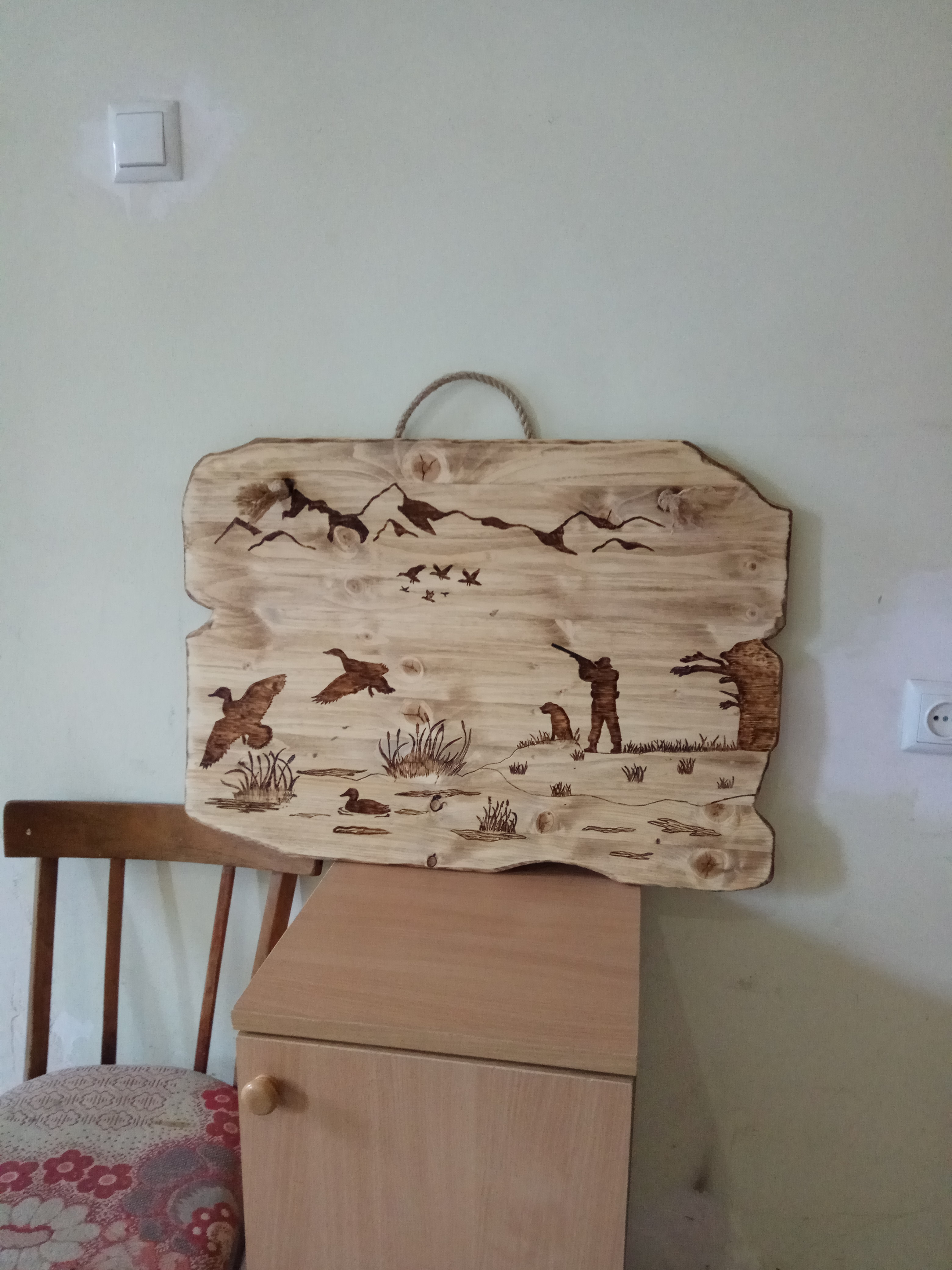 На подарок и не только. Изображения вырезаны или выжжены на искусственно состаренном дереве (сосна).