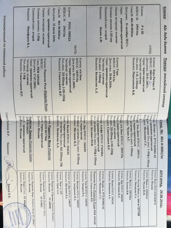 2.1. Отец :Rijanis Olaf, импорт из Сербии, РКФ 462160, св-во № 486-0002\ас, оценка экстерьера- отлично в системе РОРС и РКФ Владелец: Дупляков В.А.